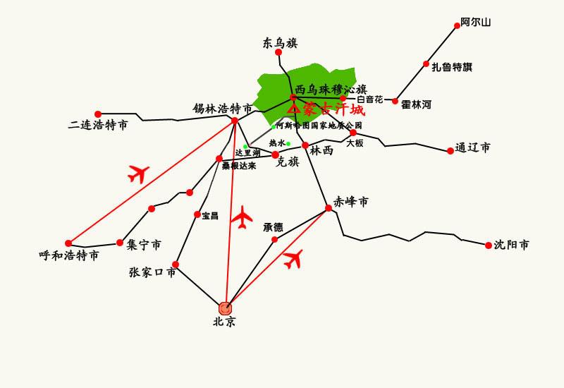 北京---赤峰450公里; 東烏旗---蒙古汗城130公里
